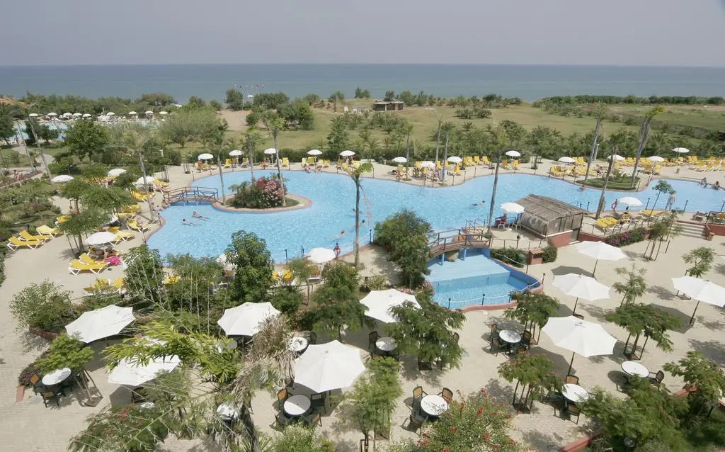 Комплекс Fiesta состоит из двух отелей 4*: Athenee Palace (2 корпуса: двухэтажный и четырехэтажный) и Garden Beach (основной корпус и 18 одноэтажных бунгало в саду, расположенных ближе к морю).