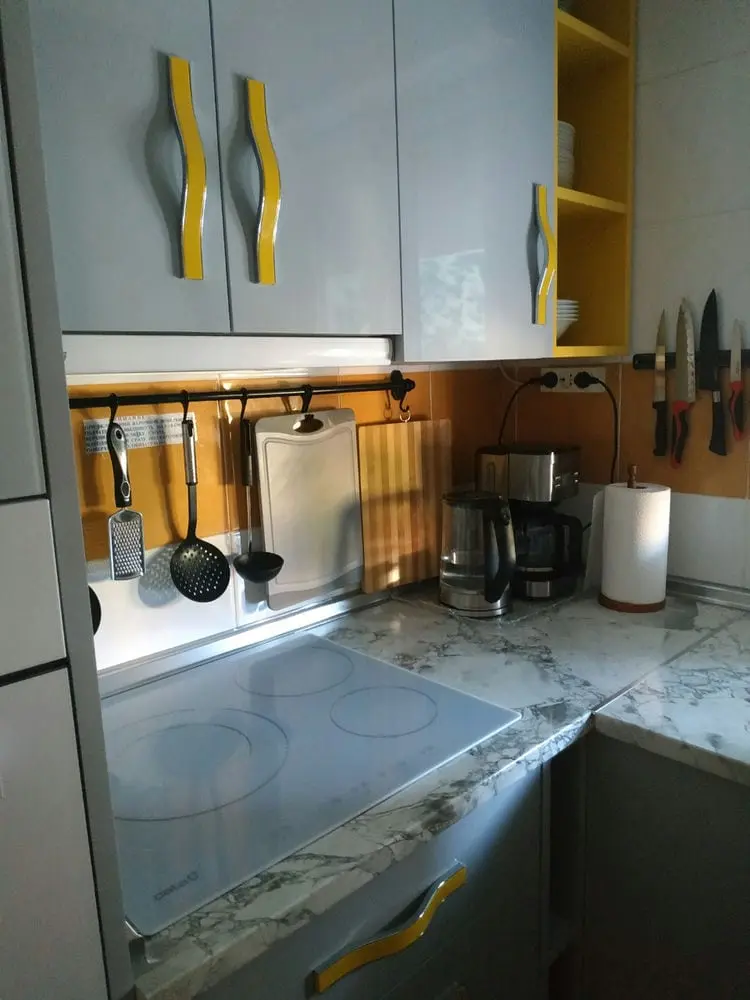 Кухня хорошо укомплектована, есть посудомоечная машинка.