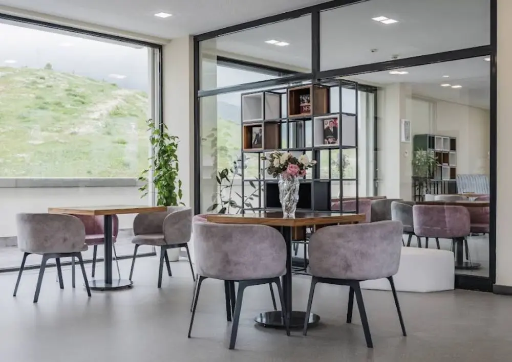- ресторан Alov (платно, a'la carte/шведский стол) - современная дизайн, великолепный вид на окружающие горы и вкусная еда