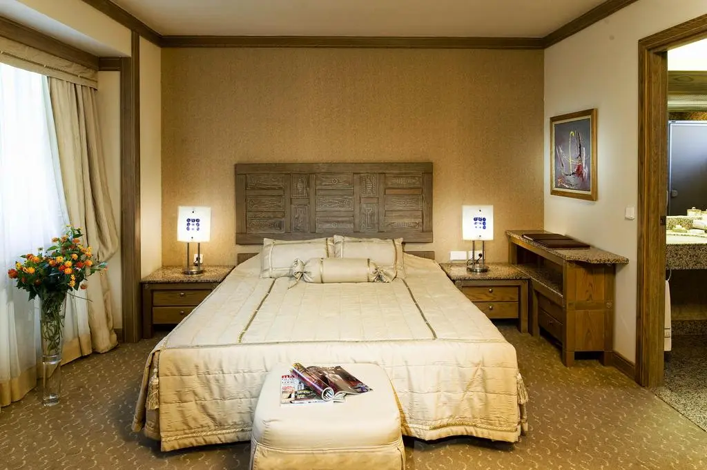 1 двухуровневая Presidential Villa (на первом уровне: собственный бассейн, гостиная, сауна, турецкая баня, велосипед и беговая дорожка, кухня, посудомоечная машина, рабочий кабинет, 3 спальни с дверью; на втором уровне: 3 спальни с дверью, в каждой комнате ванные с душем, одна из них с джакузи, макс. 4+1 чел., 1000 м2, VIP-сервис).