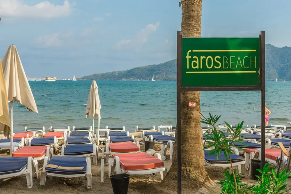 В 90 км от аэропорта г. Даламан, в 2 км от центра г. Мармарис, 1,5 км от собственного пляжа.