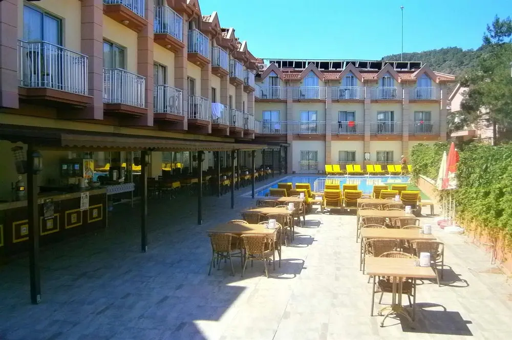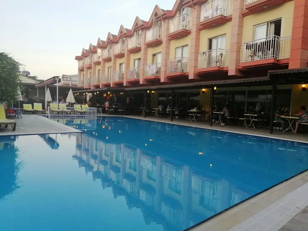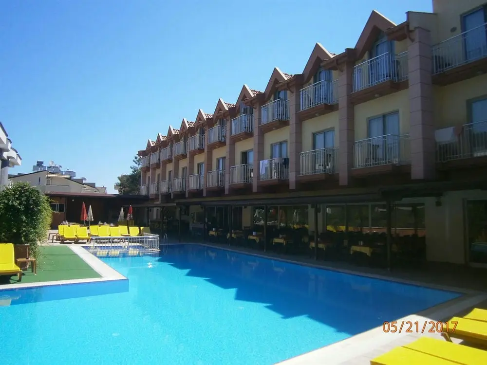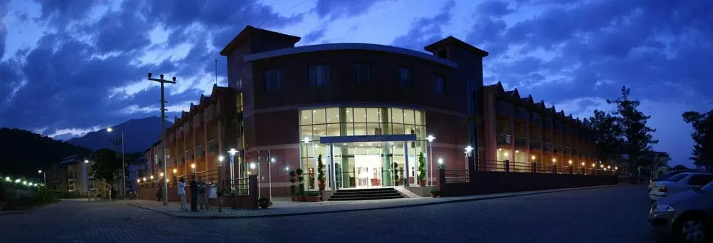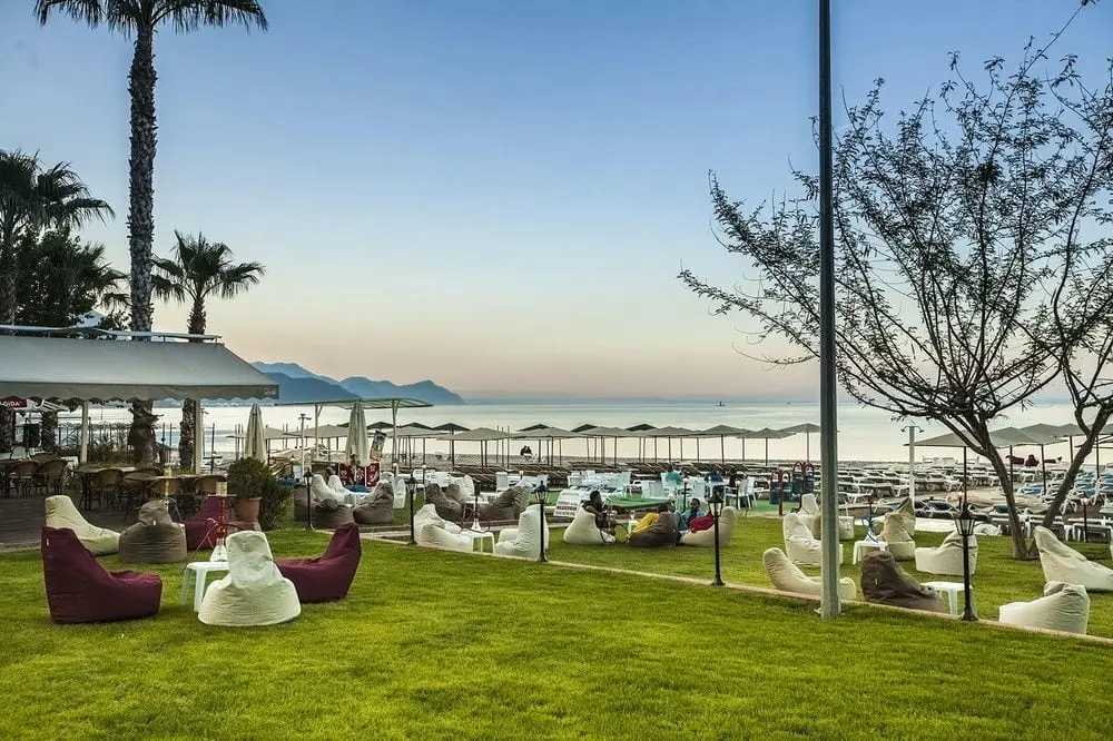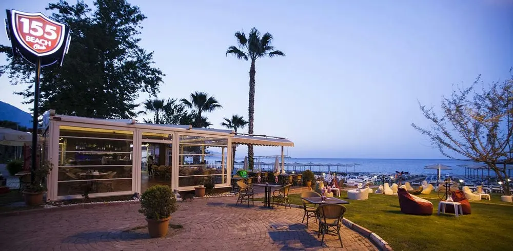 в 45 км от аэропорта г. Анталья, в г. Кемер, в 900 м через дорогу от собственного пляжа.