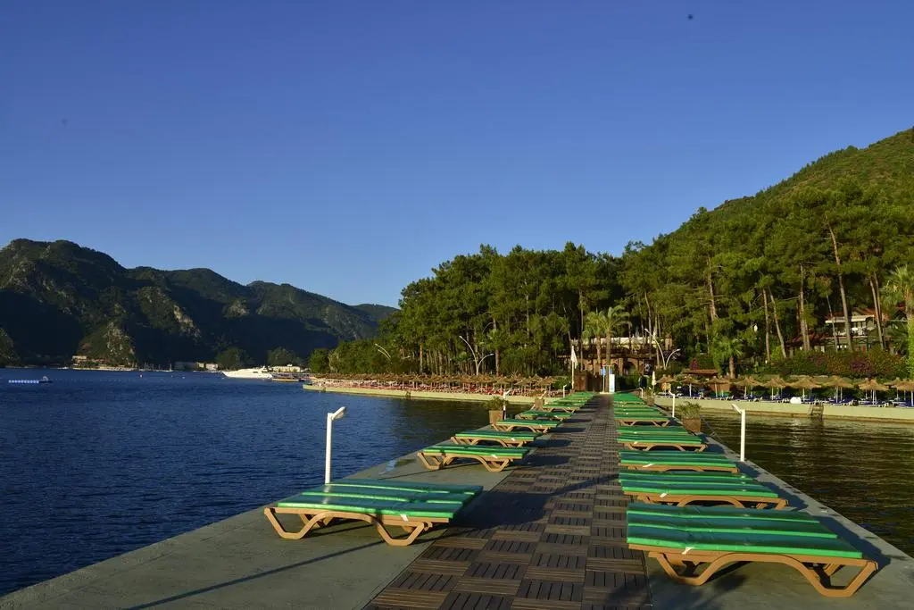 в 100 км от аэропорта г. Даламан, в 135 км от аэропорта Милас Бодрума, в 6 км от г. Мармарис, в 2 км от поселка Ичмелер, на берегу моря.