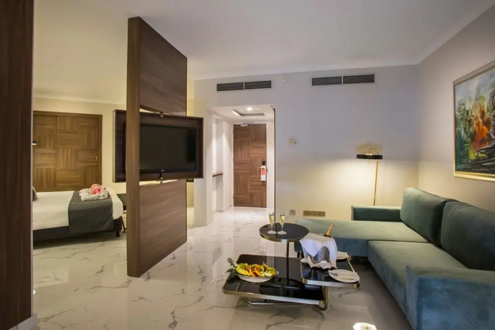 В номерах: Кондиционер, Ванная комната, 32' LED TV, Wi-Fi, Сейф, Спутниковое телевидение, Мини-бар, Набор для приготовления чая и кофе, Халат и тапочки, Гладильная доска и утюг, Фен.