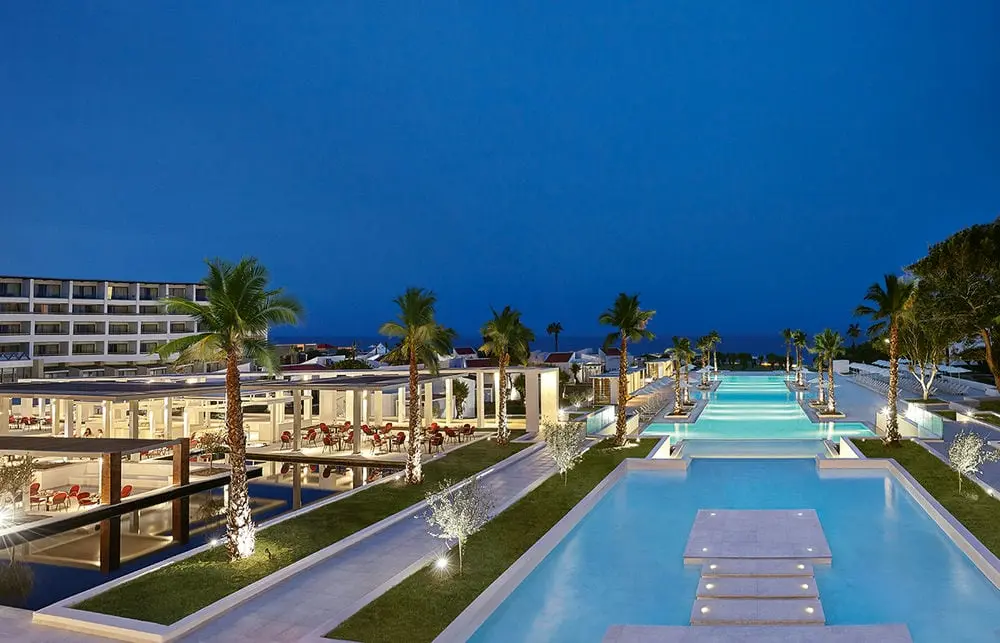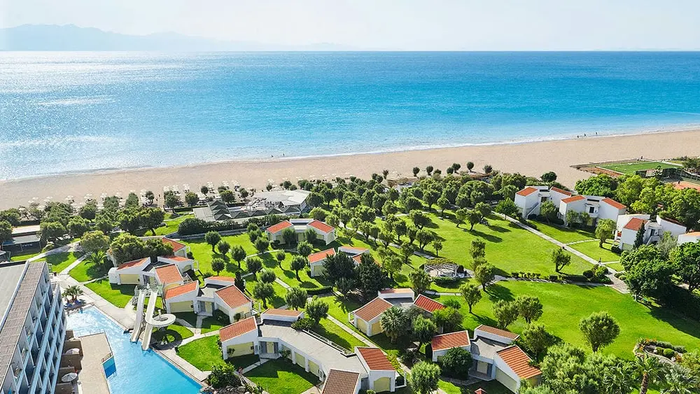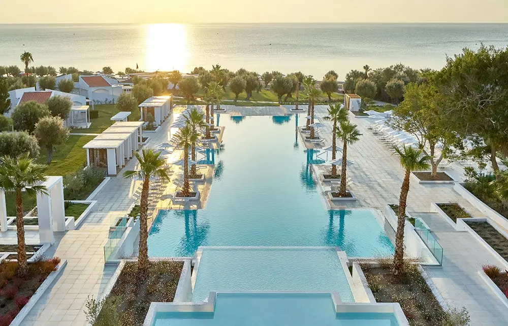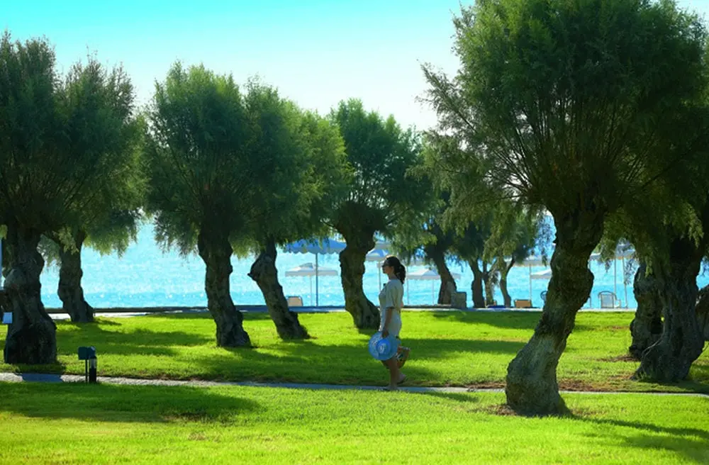 Double Garden View - Просторные двухместные номера основного здания полностью обновлены к сезону 2018, расположены в основном здании крыла “Kallithea”, имеют вид на сад. Декор номера выдержан в изысканной цветовой гамме, в спальни открытой планировки двуспальная кровать и софа для одного ребенка, отдельная ванная комната, а окна от пола до потолка и полностью меблированный балкон дополняют удобства в номере.