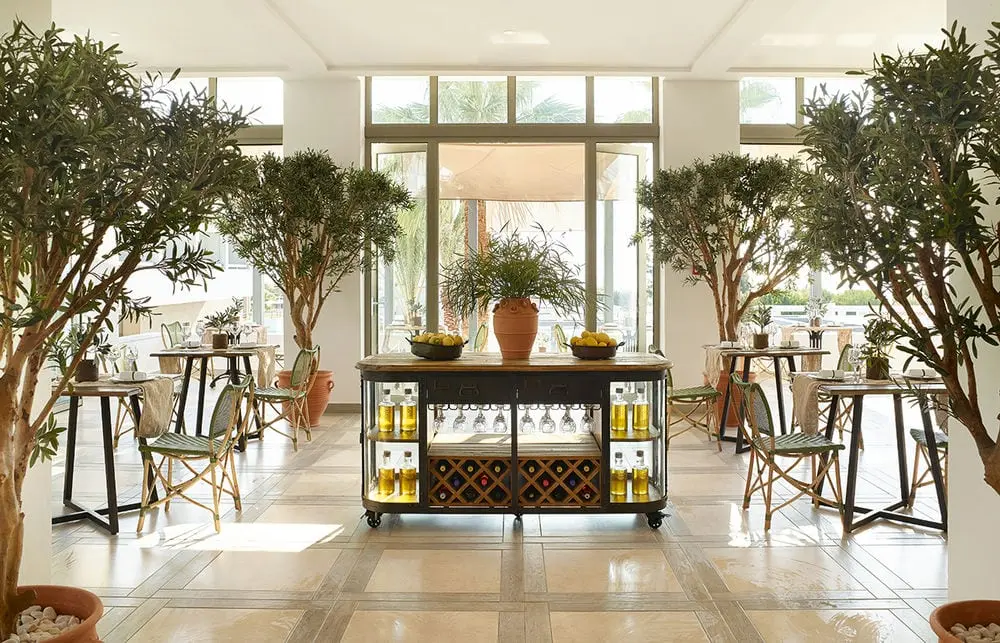 Шведский стол | Часы работы: 07.15-10.30, 12.30-14.30, 18.30-21.15 / с конца апреля(середины мая) до середины октября / в зависимости от погодных условий | Тип кухни: международная, греческая | Кондиционирование | Дресс-код: Элегантно-повседневная форма одежды. Вечером не приветствуется пляжная одежда и шорты. Для мужчин обязательны длинные брюки и рубашка с длинным или коротким рукавом | Для некурящих