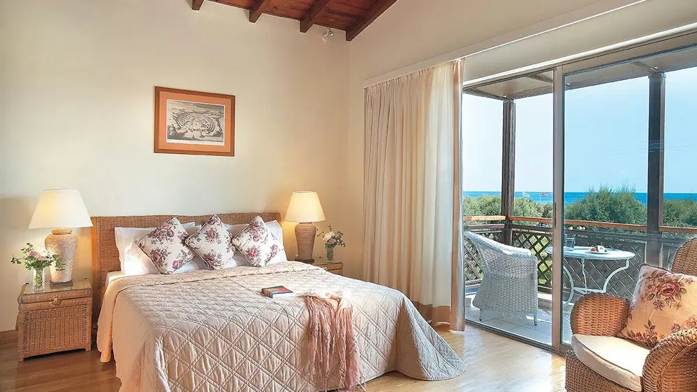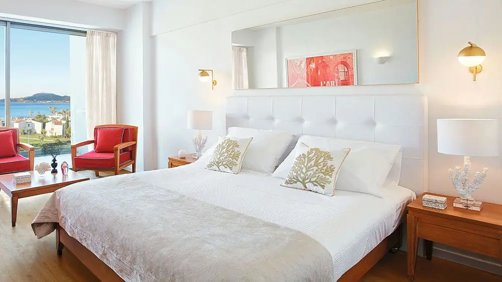 Double Superior Sea View - Новые элегантные номера основного здания. Состоят из спальни, гардеробной, просторной ванной с двумя раковинами. Эти номера имеют окна от пола до потолка с панорамным видом на море и балкон с летней мебелью.