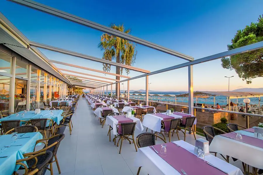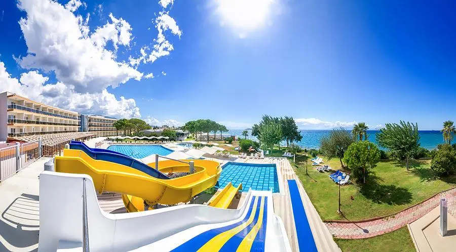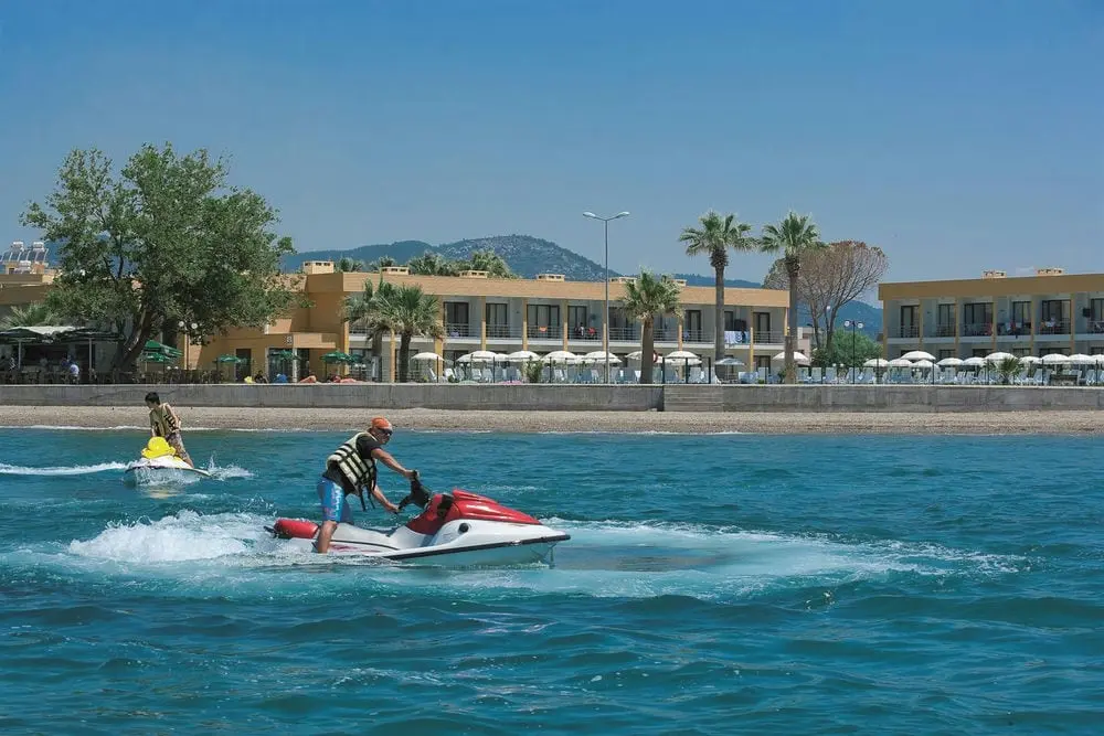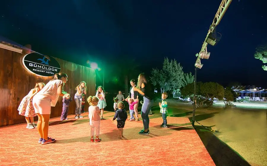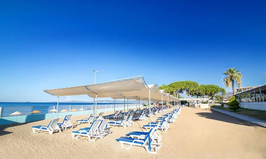 в 34 км от аэропорта г. Измир, в 168 км от аэропорта г. Бодрум, в 2 км от центра г. Гюмюльдур, на берегу моря. До античного города Эфес 35 км.