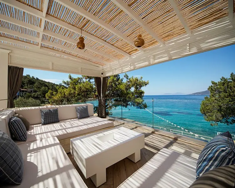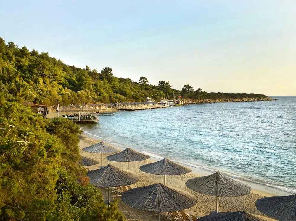 На пляже зонтики, шезлонги, полотенца: бесплатно.