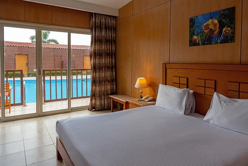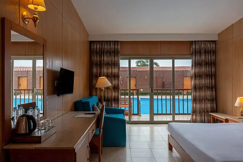 - Swim – Up Номер ( Вид на бассейн) 34 -Спальня с двуспальной кроватью размера «Queen - size» или двумя односпальными кроватями, гостиная зона, ванная комната с душем, балкон