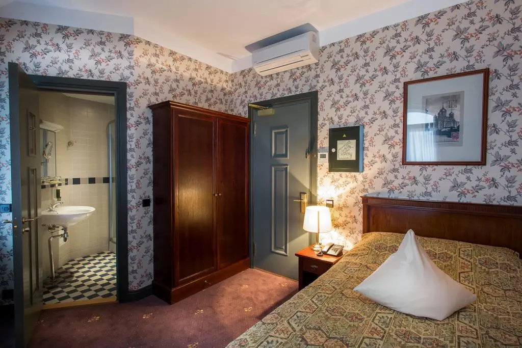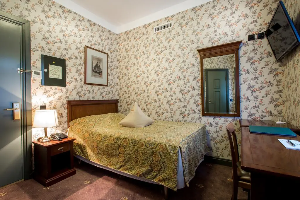 Одноместный номер площадью 14 кв. метров обставлен с классической элегантностью и оснащен удобной одноместной кроватью. В номере также есть TV, бесплатный WiFi, телефон, приватная ванная комната с душем, фен, халат с тапочками, минибар и рабочий стол.