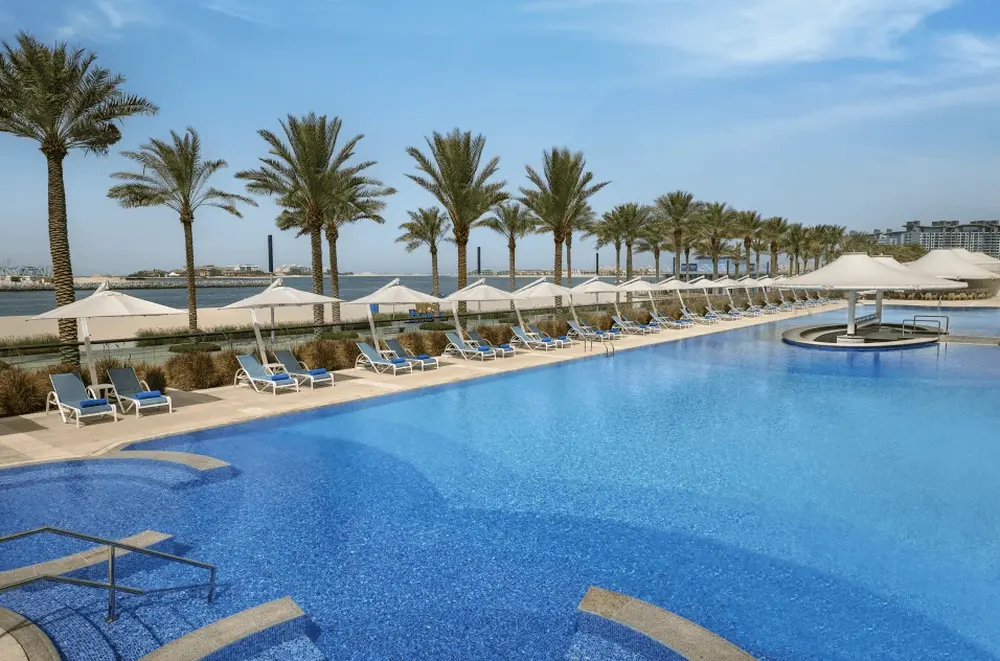 Роскошный пляжный курорт Hilton Dubai The Palm расположен на западном побережье эксклюзивного острова Пальм-Джумейра. В 10 минутах ходьбы находится аквапарк Aquaventure,а в 20 минутах - знаменитый небоскреб Бурдж-Халифа и торговый центр Dubai Mall. Расстояние до Международного аэропорта Дубай составляет 33 км, расстояние до центра города - 32 км.