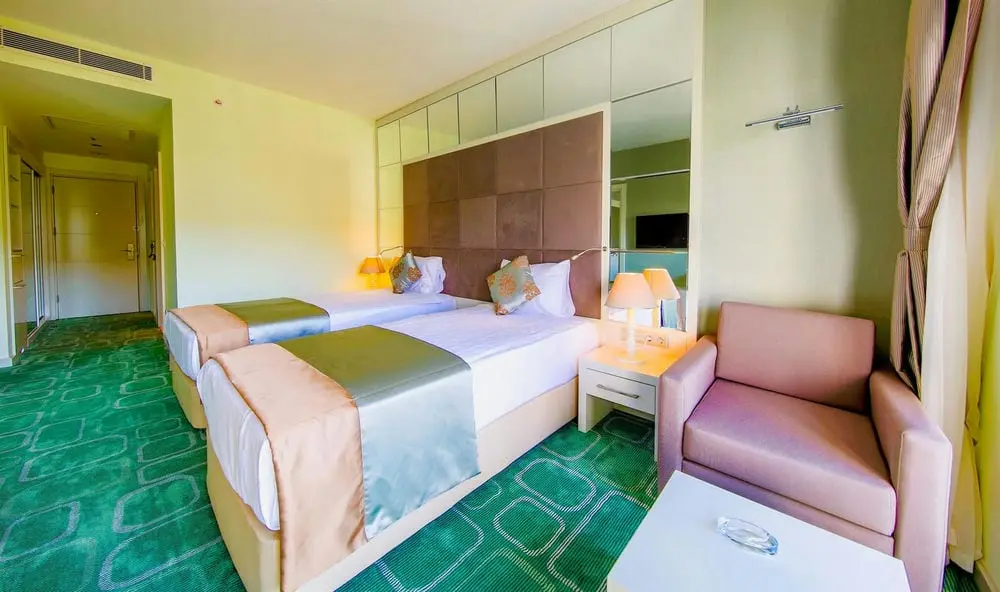 40 двухкомнатных resort suite (гостиная, спальня с дверью, макс. 3 чел. 45-73 м2, ковер);