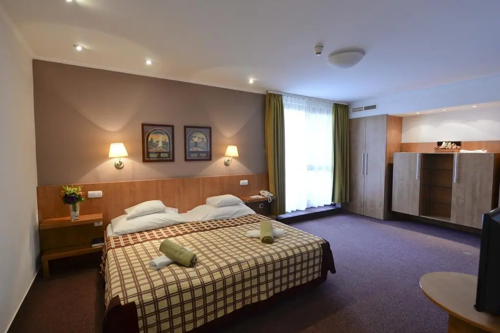 Отель так же имеет свой термальный источник, который позволяет с упехом лечить проблемы опорно-двигательной системы.
