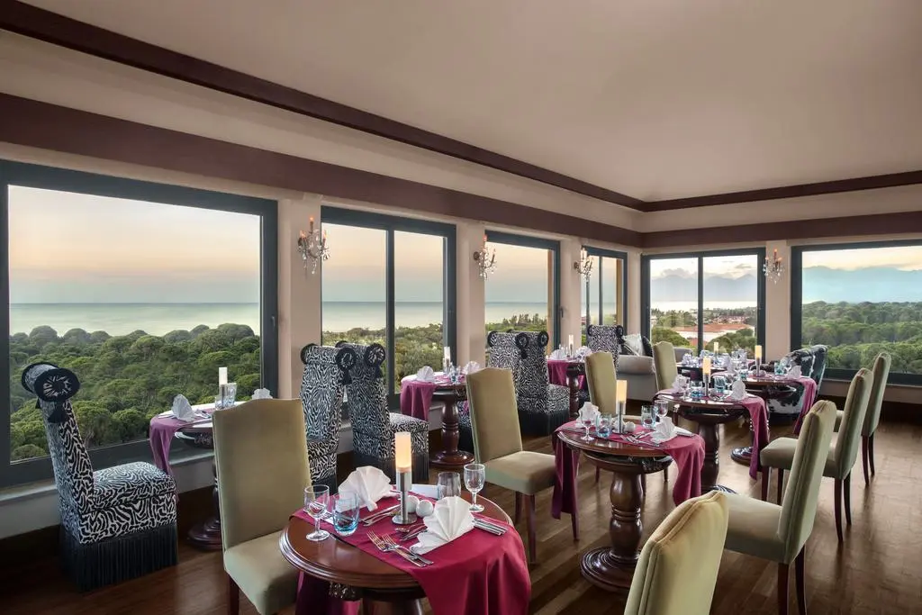 В концепцию входит: завтрак, поздний завтрак, обед, ужин и поздний ужин - шведский стол; свежевыжатые фруктовые соки, разнообразные закуски и выпечка, пицца, фаст-фуд, гёзлеме, кумпир, вафли - в определенные часы, мороженое в баре на пляже, диетические блюда на шведском столе, безглютеновое и безлактозное меню, некоторые местные и некоторые импортные алкогольные и безалкогольные напитки, травяные чаи.