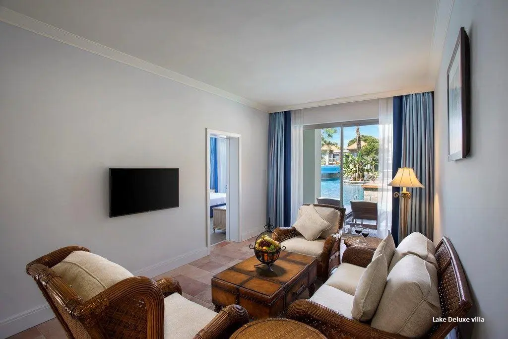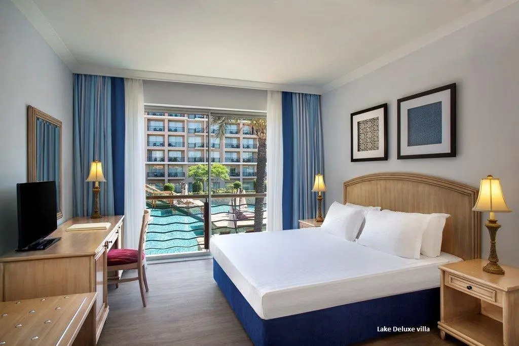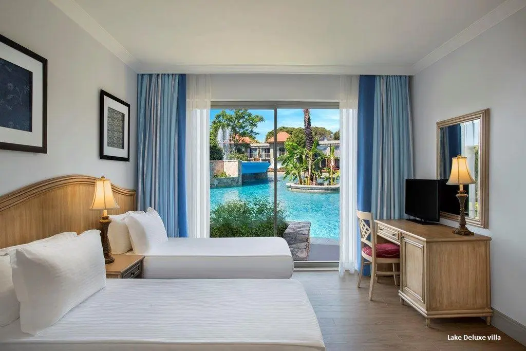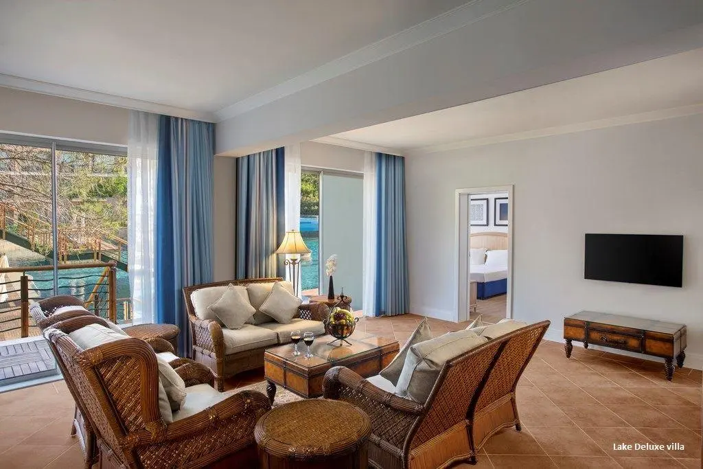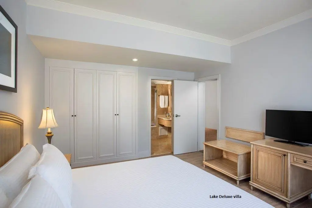 - 3 пятикомнатных Lake Deluxe Villa (гостиная c террасой, 4 спальни с дверью, 4 ванные: 2 с ванной и 2 с душем (в 1-ой из Lake Deluxe Villa 3 ванные комнаты); макс. 8 чел., 130 м2, VIP-сервис).