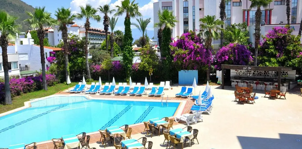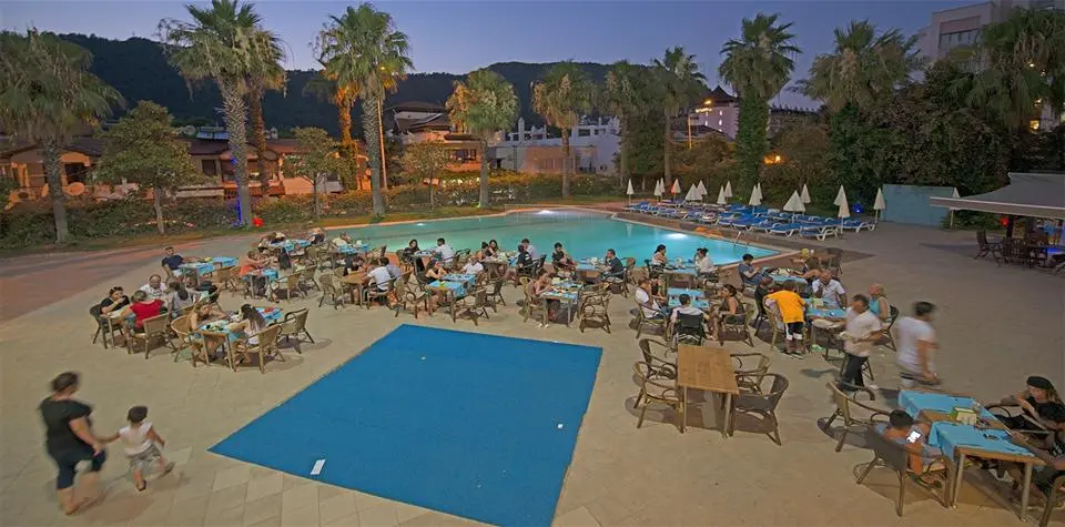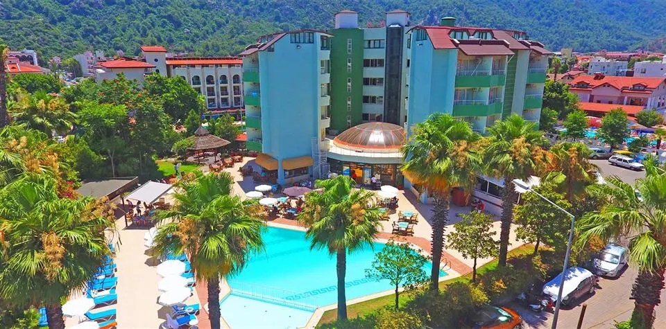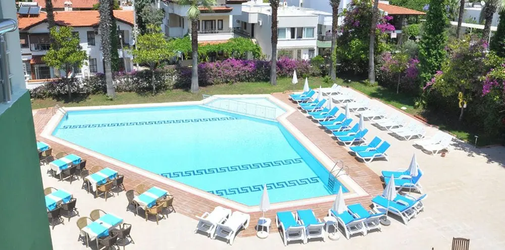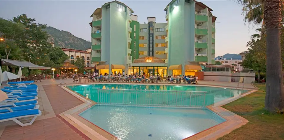 в 110 км от аэропорта г. Даламан, в 10 км от г. Мармарис, в поселке Ичмелер, в 100 м от пляжа.