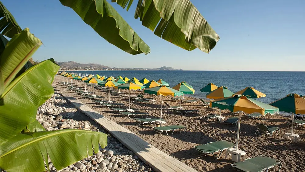 • Пляжные полотенца (платно) • Шезлонги и зонтики (5 евро/чел)