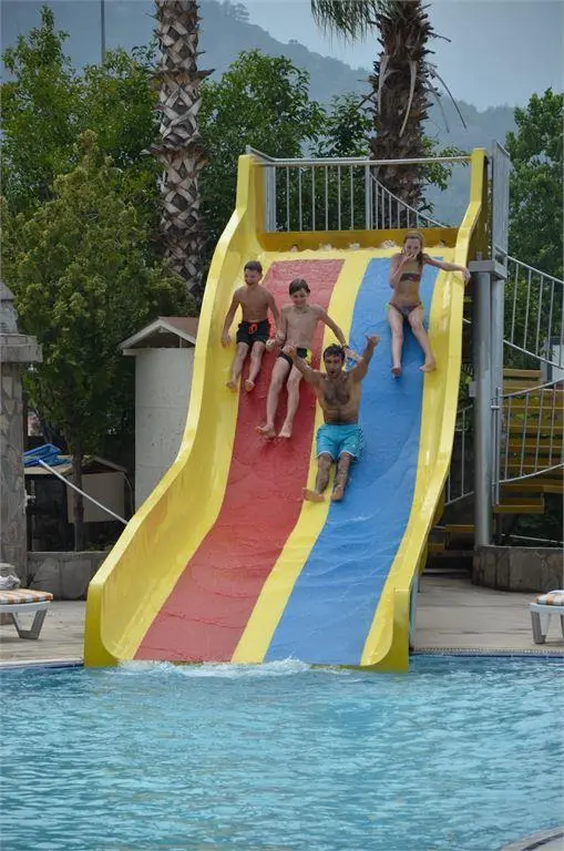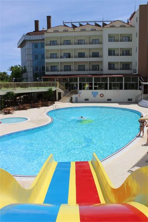 в 60 км от аэропорта г. Анталья, в 6 км от Кемера, в поселке Чамьюва, в 150 м от собственного пляжа.