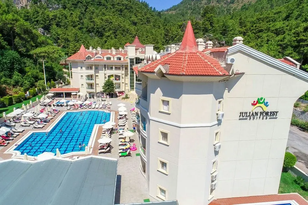- На территории отеля находится открытый гранд бассейн, oткрытый бассейн с водными горками, oткрытый детский бассейн, открытая терраса с шезлонгами и зонтиками.