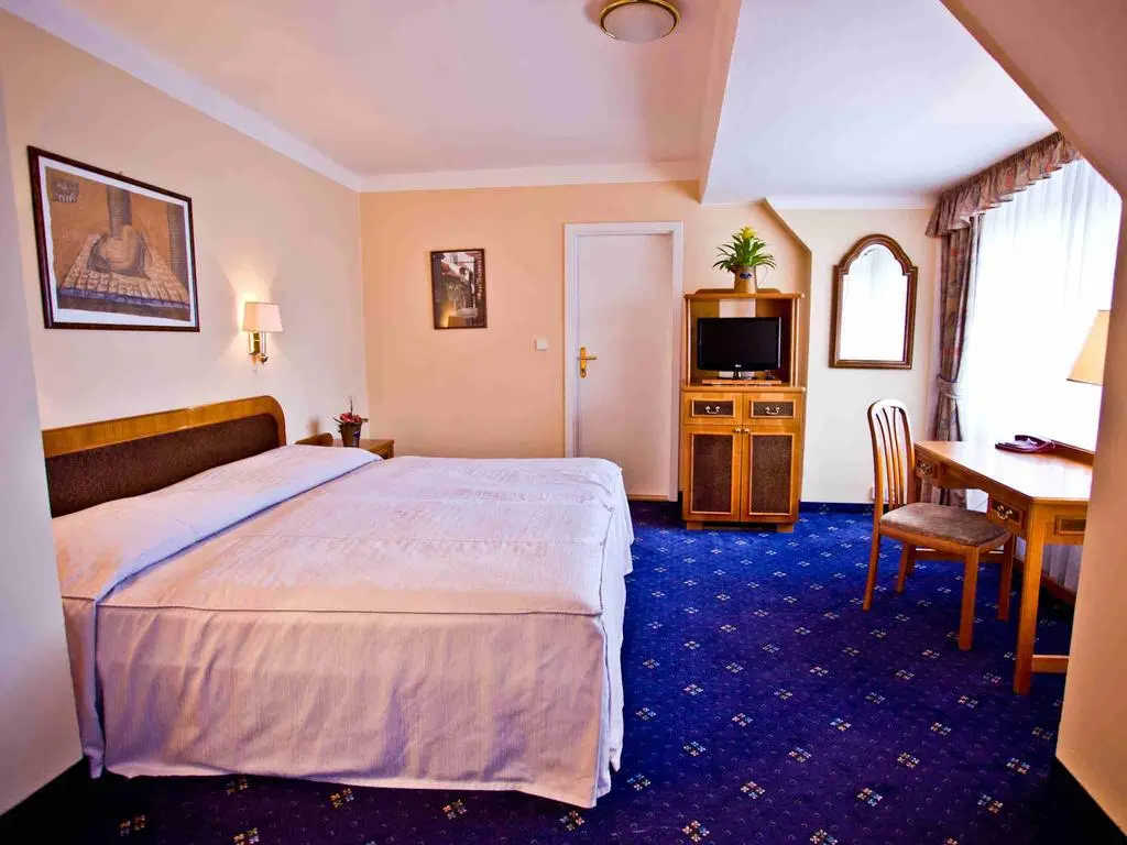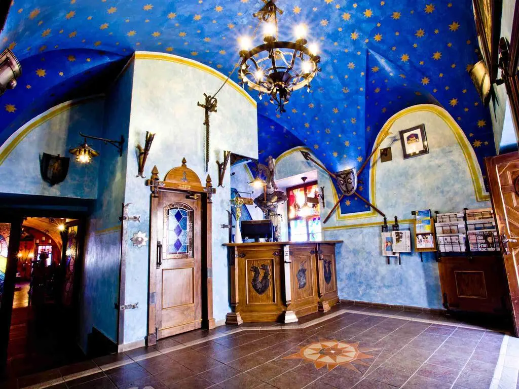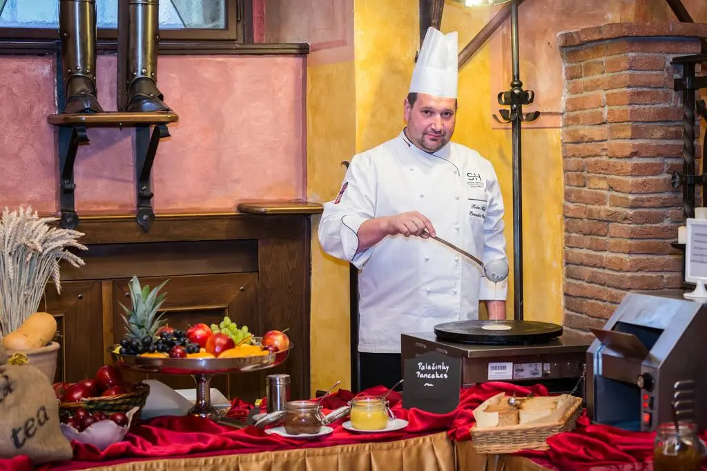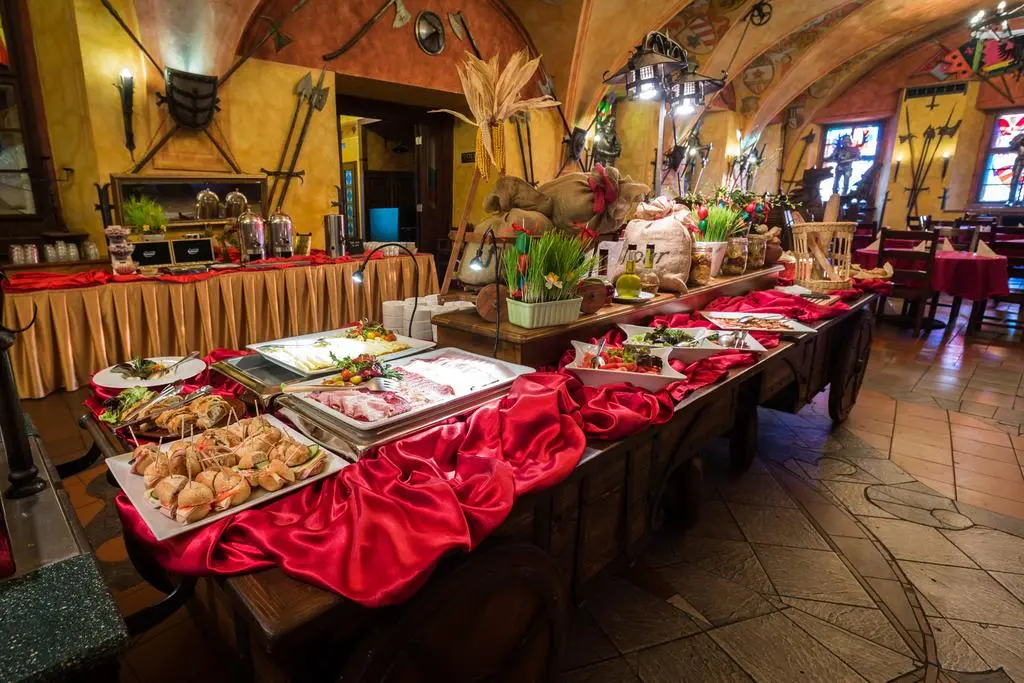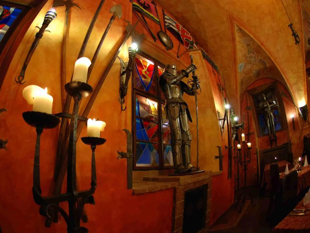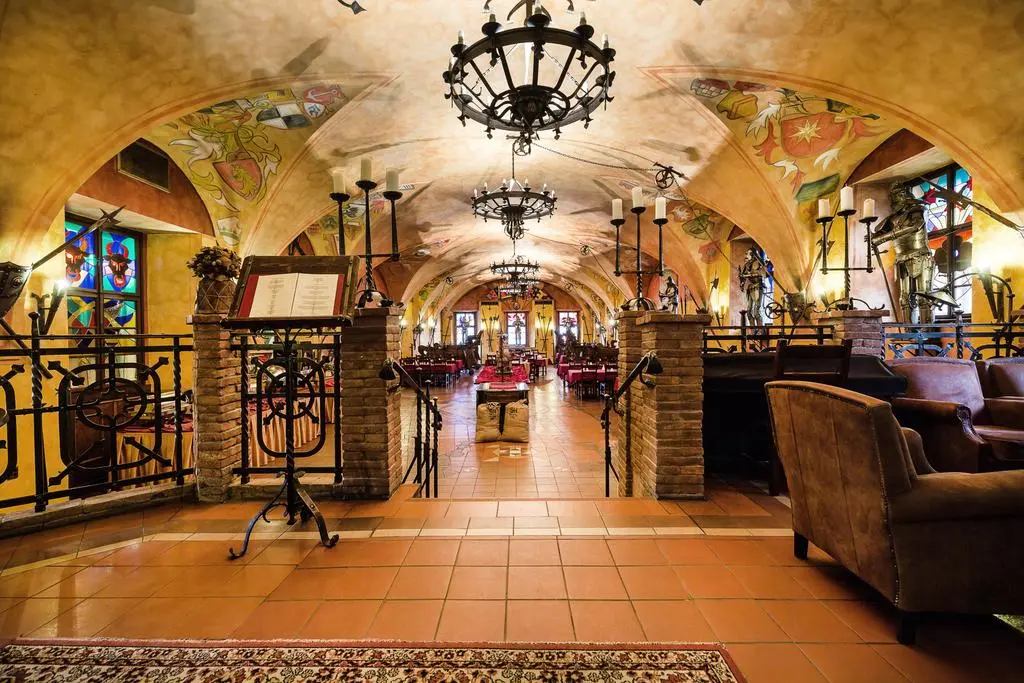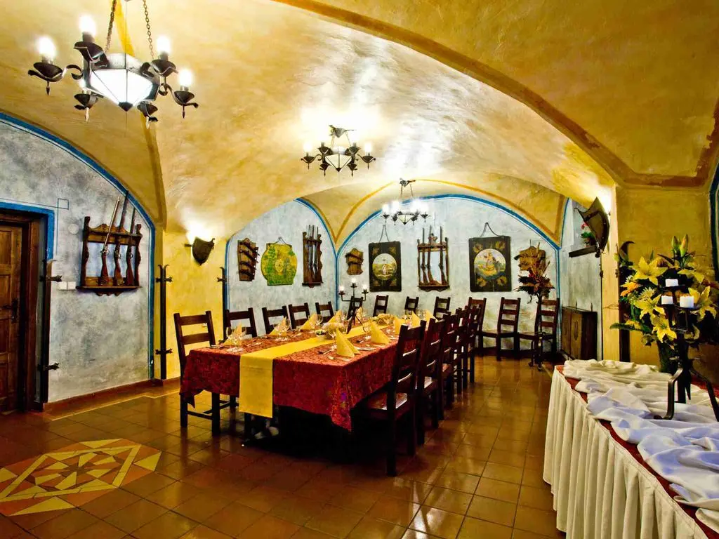 В историческом ресторане Knight's Hall, интерьер которого украшает коллекция старинного оружия, сервируют блюда интернациональной кухни, фирменные блюда традиционной чешской кухни и большой завтрак «шведский стол».
