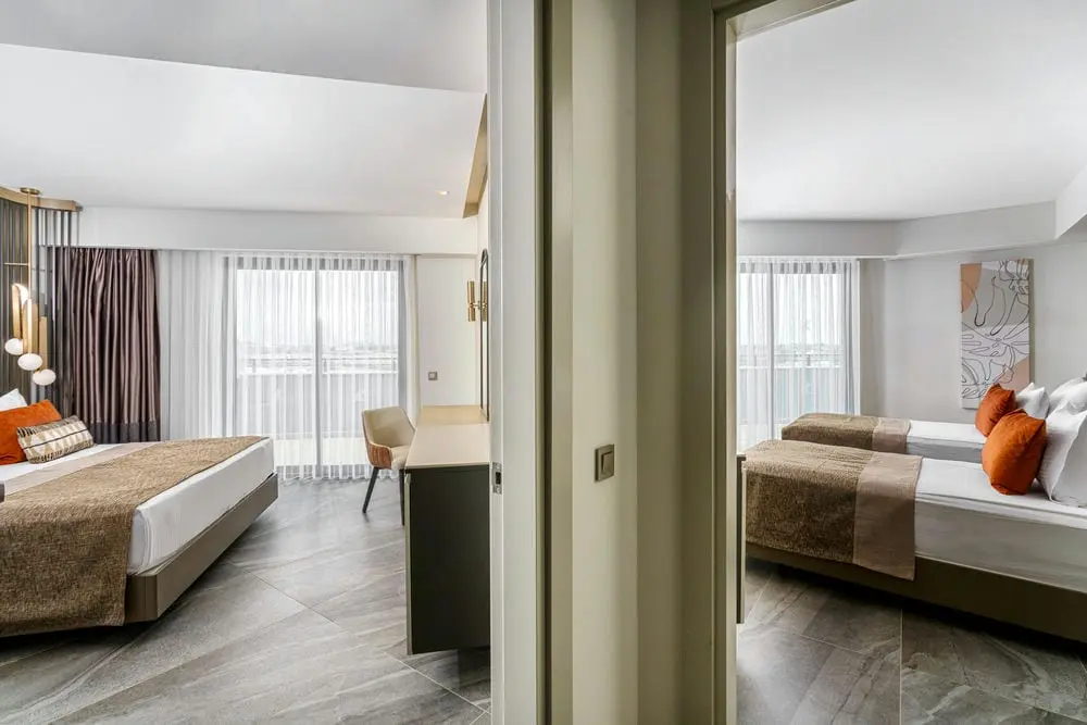 24 Family Room (44 м2, 2 смежные спальни, 1 двуспальная и 2 односпальные кровати, макс. 4+1+1 (infant) чел.);
