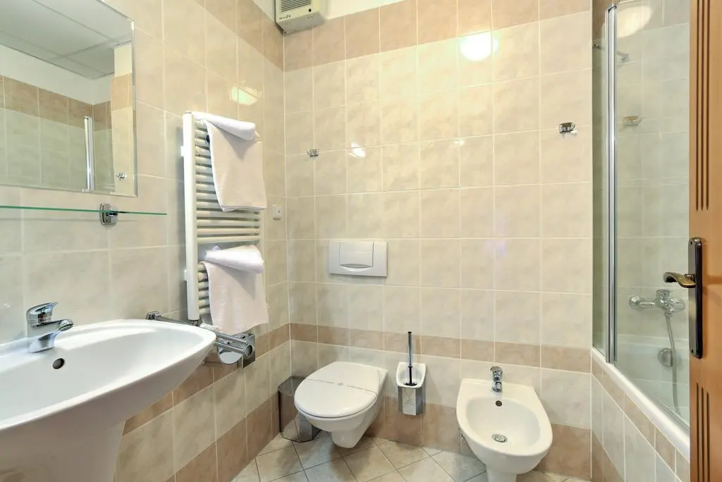 двухместный номер, ванная комната с ванной или душем, халат, тапочки