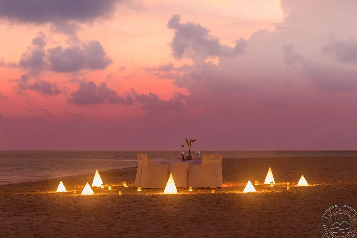 Завтрак (8:00–10:30), обед (13:00–14:30) и ужин (19:00–21:30) подаются в ресторане Koamas для гостей Garden Bungalows, Beach Bungalows, Beach Villas, Jacuzzi Beach Villas, в ресторане Sangu для гостей O Beach Villas, О Jacuzzi Beach Villas (все гости должны быть старше 18 лет), Sangu Water Villas, гости Private Pool Villa могут выбрать, где они предпочитают обедать (при наличии детей действуют ограничения). Рестораны предлагают шведский стол с разнообразным меню на любой вкус.