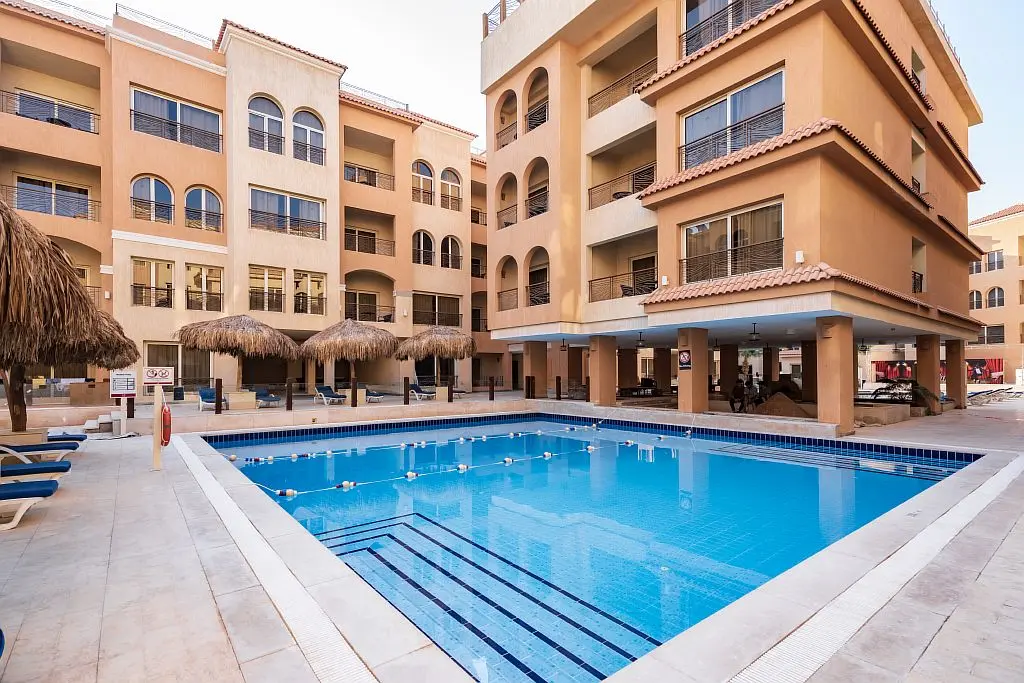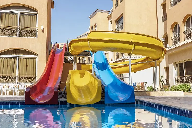 - Также гости могут пользоваться 2 бассейнами, аквапарком с 5 горками.