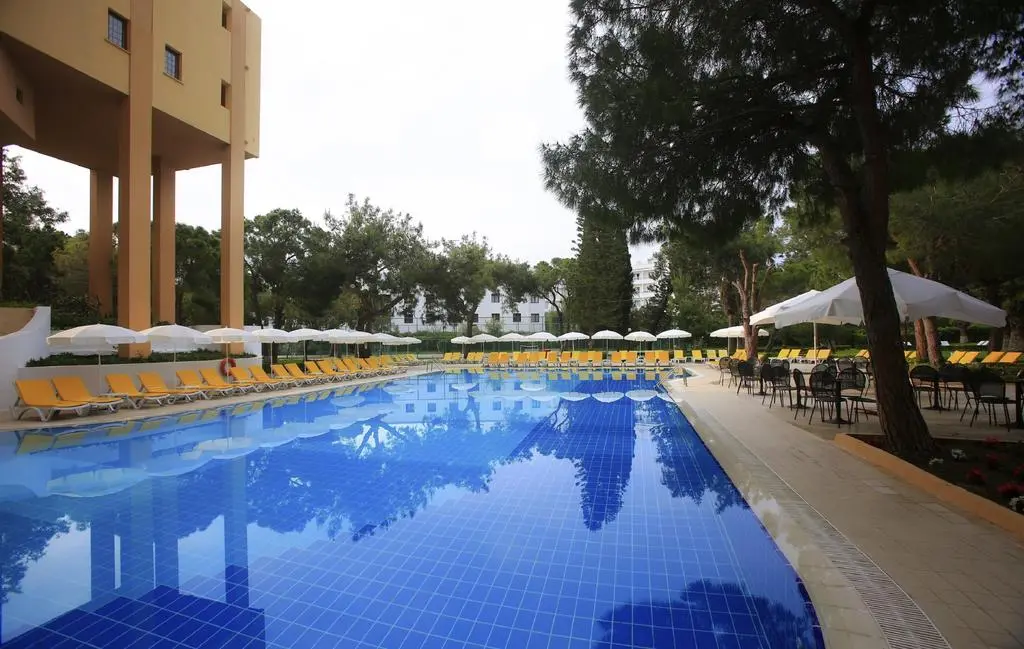 в 65 км от аэропорта г. Анталья, в 6 км от г. Манавгат, в 450 метрах от собственного пляжа.