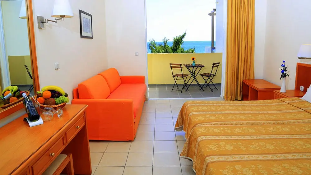 - Семейный номер состоит из главной спальни с двумя односпальными кроватями, отдельной спальной комнаты с двумя односпальными кроватями или софой, ванной комнаты с ванной или душевой и имеет собственный меблированный балкон или террасу с видом на сад / море.