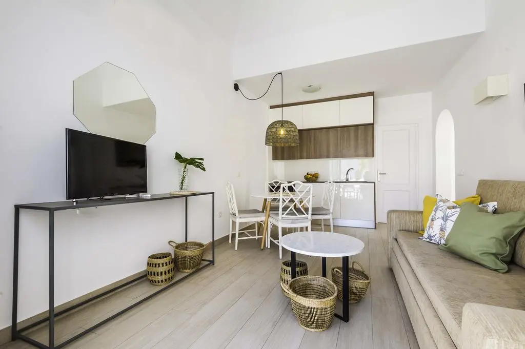 Светлые, просторные апартаменты с видом на бассейн и сады с меблированного балкона оформлены в современном стиле. В гостиной есть диван-кровать и телевизор с плоским экраном. Мини-кухня оснащена микроволновой печью, холодильником, духовкой и кофеваркой. Существует спальня с двумя односпальными кроватями.