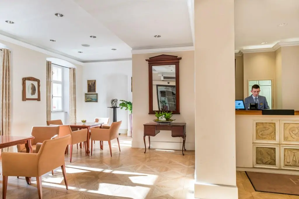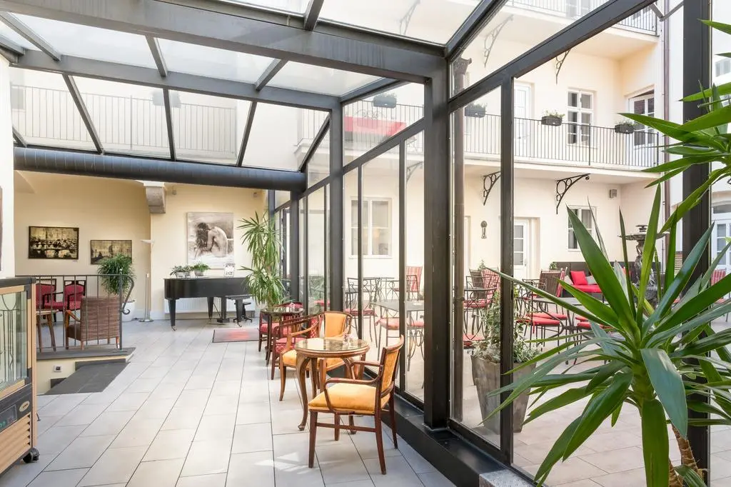 Открытый двор отеля Leonardo Prague - идеальное место, чтобы расслабиться, слушая журчание фонтана.