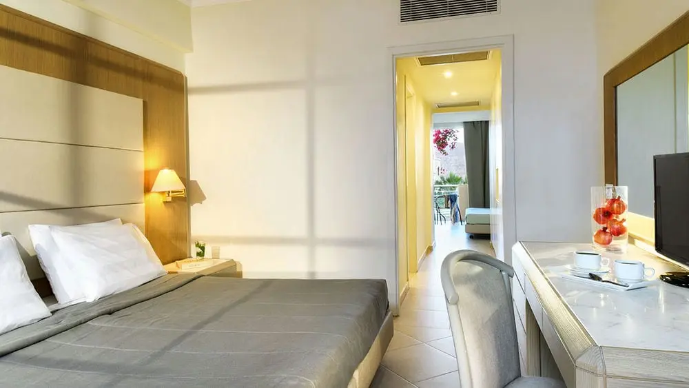 Family Sea View - Меблированные стандартной двуспальной кроватью и двумя односпальными кроватями, семейные номера, состоят из двух жилых помещений, разделенных дверью; номера выдержаны в современных тонах с преобладающими голубым и коричневым цветами; в данном типе номера не предусмотрено дополнительного спального места.