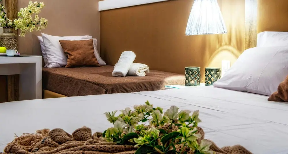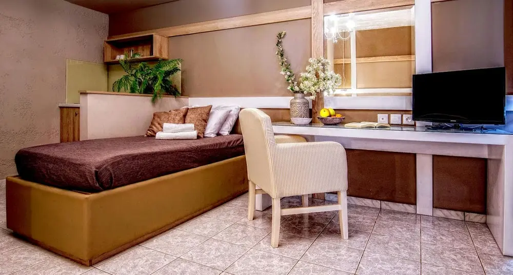 Пол - плитка, смена белья - 2 раза в неделю, уборка номера - 7 раз в неделю