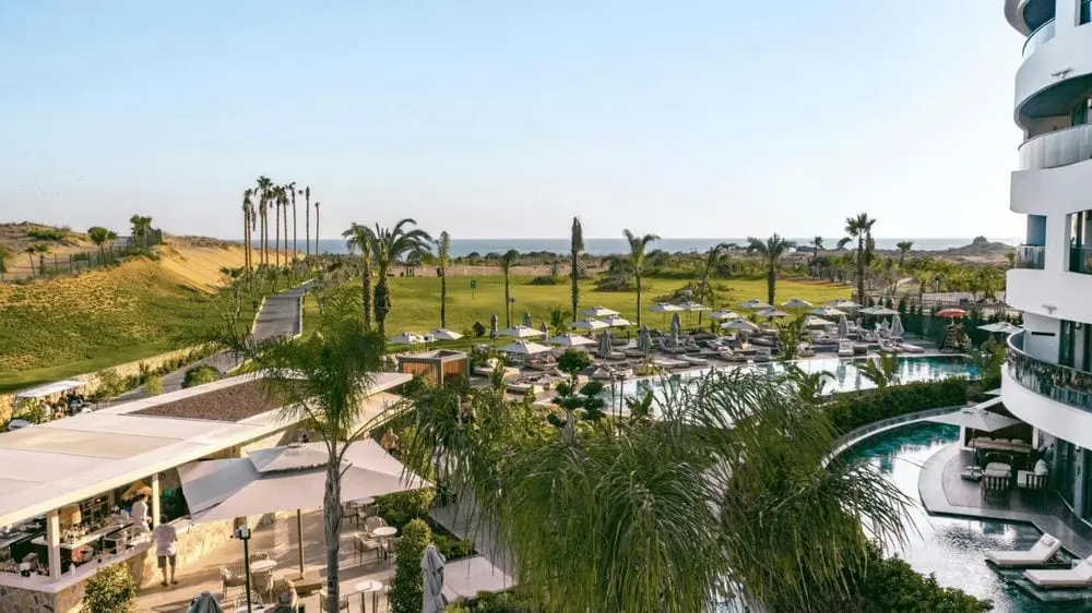 Общая площадь территории составляет 54 000 м2. Состоит из главного 3-этажного здания четырех 5-этажных корпусов (блоки A и B ближе к морю, блоки C и D ближе к аквапарку, соединяются подземным переходом, все типы номеров расположены во всех блоках). Всего 380 номеров.