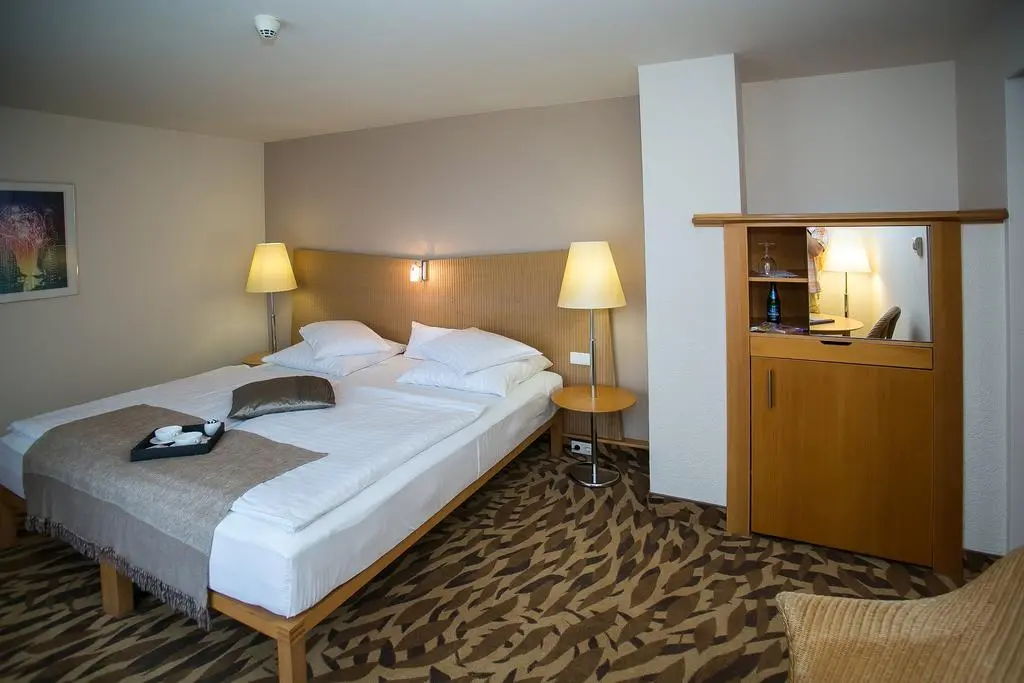 - Двухместный номер Grande с видом на бассейн, парк, вход , площадью около 31 м2, балкон площадью около 2,5 м2