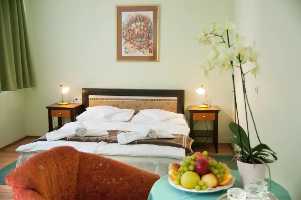 У нас каждый гость может найти себе подходящий ему тип комнаты, хоть семьи для отдыха или развлечения, хоть для длиннейшего курса лечения на хевизском геотермальном озере.