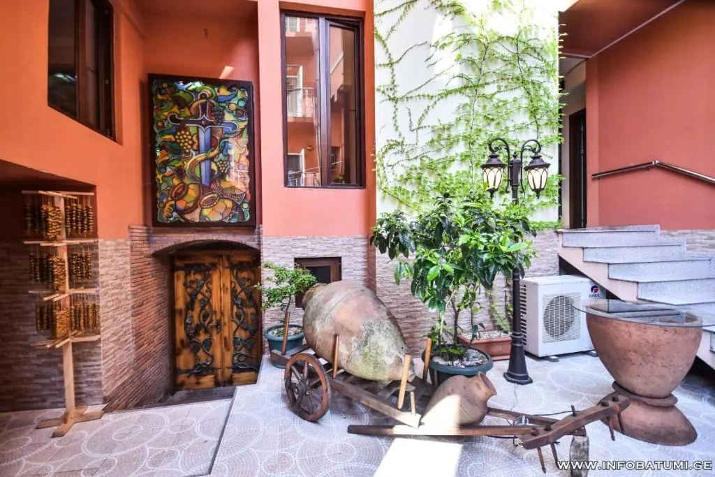 Завтраки накрывают в уютном ресторанчике. По утрам гости могут заказать завтрак в номер. В баре отеля и на террасе вам предложат широкий выбор грузинских вин.