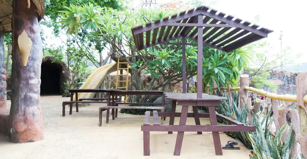 На территории курортного отеля работает ресторан на открытом воздухе с видом на ландшафтные сады. В нем подают блюда индийской и континентальной кухни. Осуществляется обслуживание номеров.