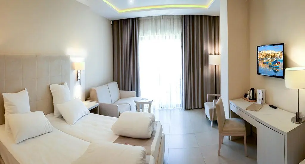 Также оборудован бизнес-центр с помещениями для проведения конференций. Спа-отель находится в северной части острова, в 30 минутах езды от Валлетты, столицы Мальты.