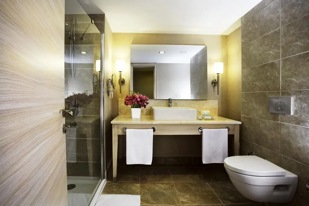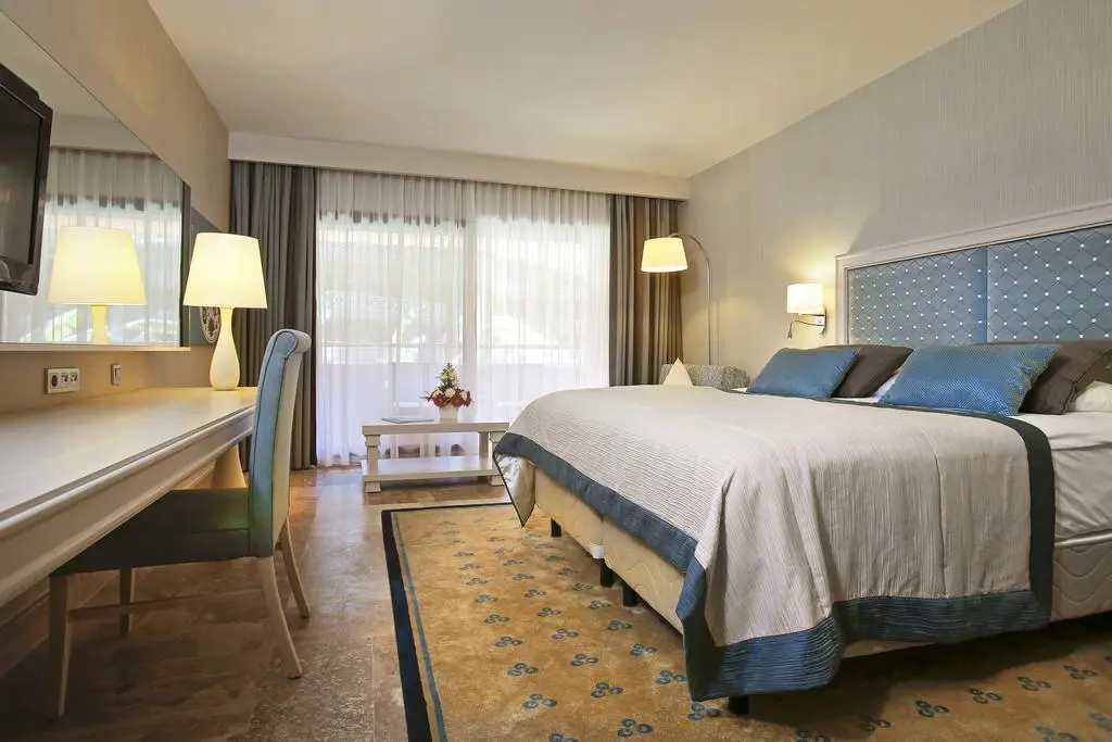 Описание номер: электрический чайник, сейф: в номере, бесплатно, смена белья: 3 раза в неделю, кондиционер: центральный, уборка номера: ежедневно, телефон, пол: мрамор (и ковровое покрытие), тапочки, балкон или терраса, фен: есть, мини-бар бесплатно (вода, прохладительные напитки - ежедневно), душ, набор для приготовления чая/кофе, Интернет: Wi-Fi, бесплатно, телевизор: есть (русский канал),
