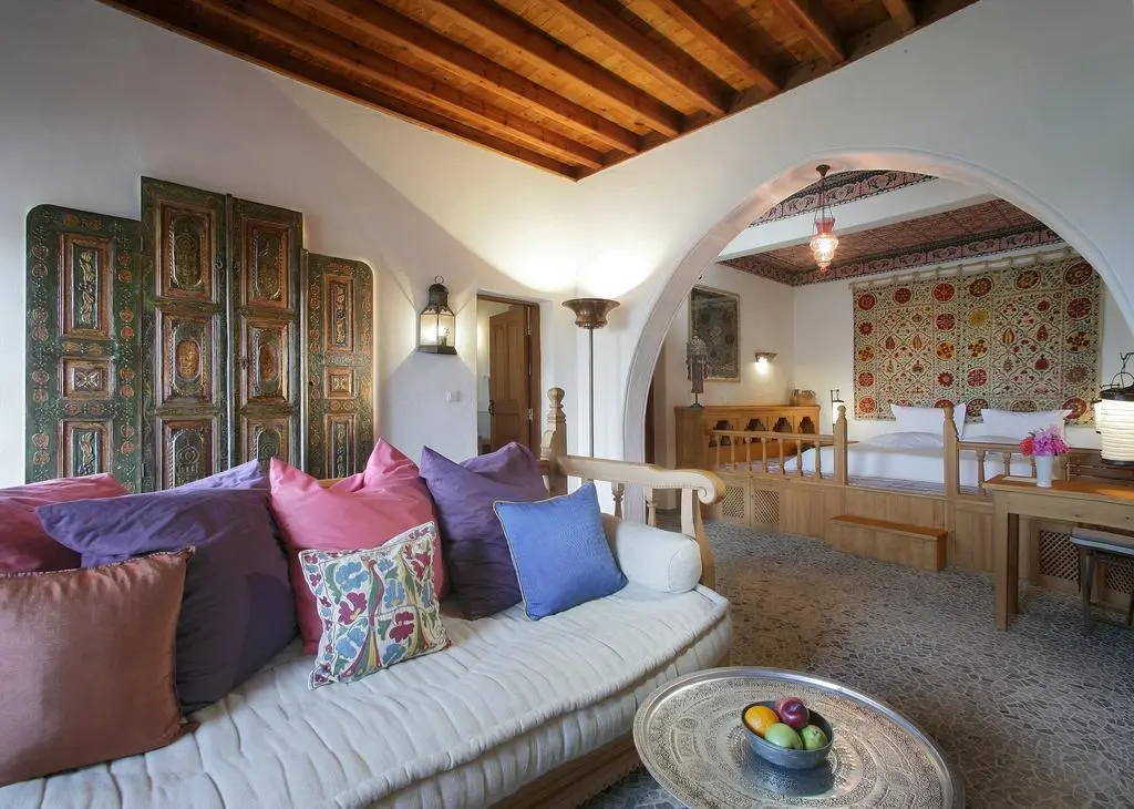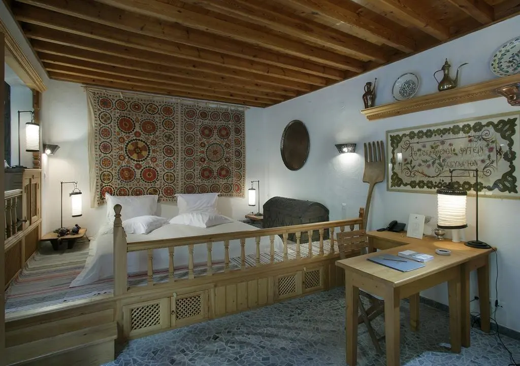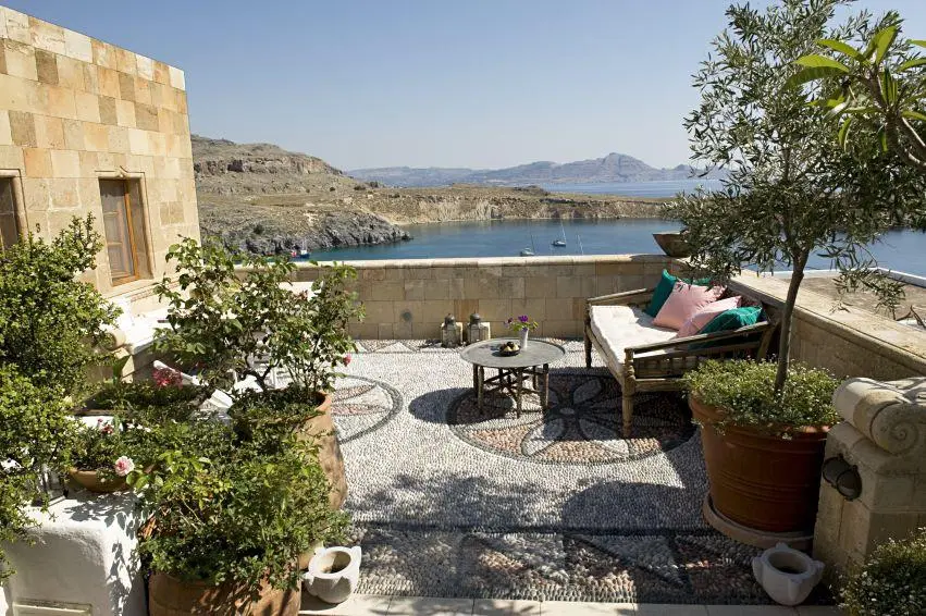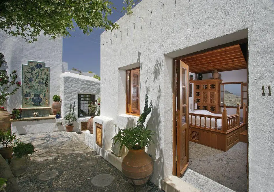 Honeymoon Suite (макс. 3+1) 45 кв.м просторный номер открытой планировки кроватью в традиционном стиле города Линдос, а также получастным внутренним двориком с бугенвиллиями и видом на патио.