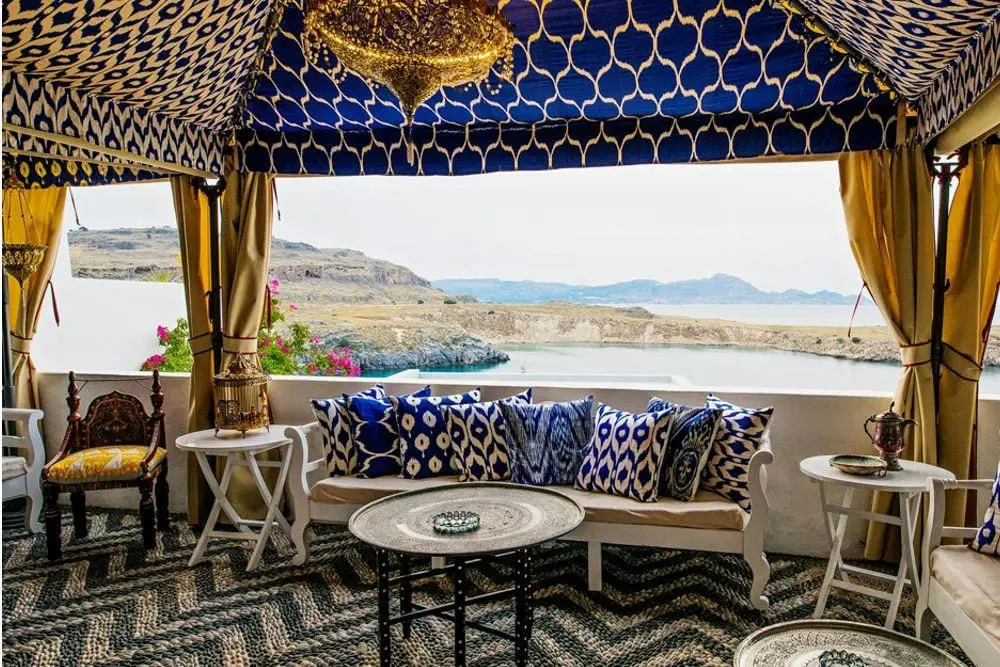 Superior Suite (макс. 3+1) номер открытой планировки с зоной гостиной и частной террасой с панорамными видами на бухту Линдоса