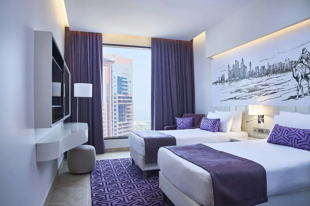 Two Bedroom Suite Skyline View (59-62 м2, с видом на шоссе шейха Зайда, кровать king size/twin, 2 ванные, макс. 4+2 чел/5+1 чел).