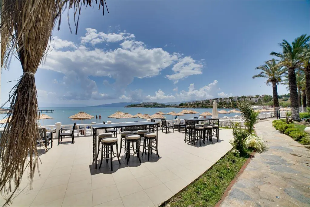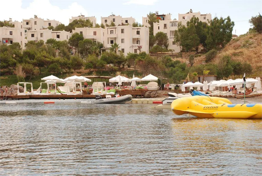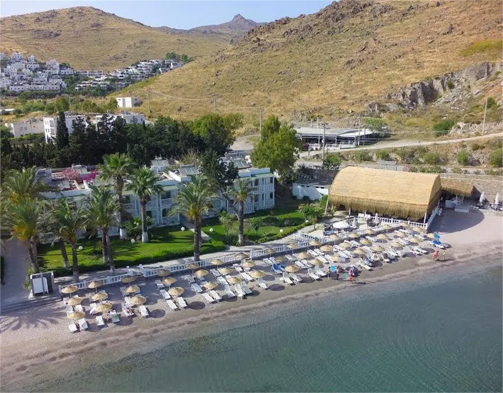 в 55 км от аэропорта Миласа Бодрума, в 241 км от аэропорта Измира, в 225 км от аэропорта Даламана, в 24 км от центра г. Бодрум, в 8 км от поселка Тургутрейс, на берегу моря.