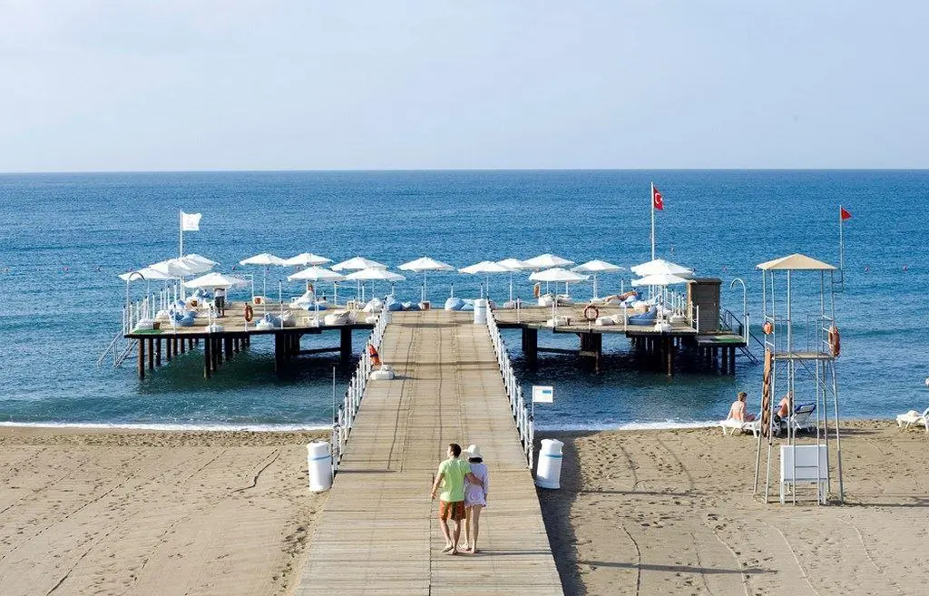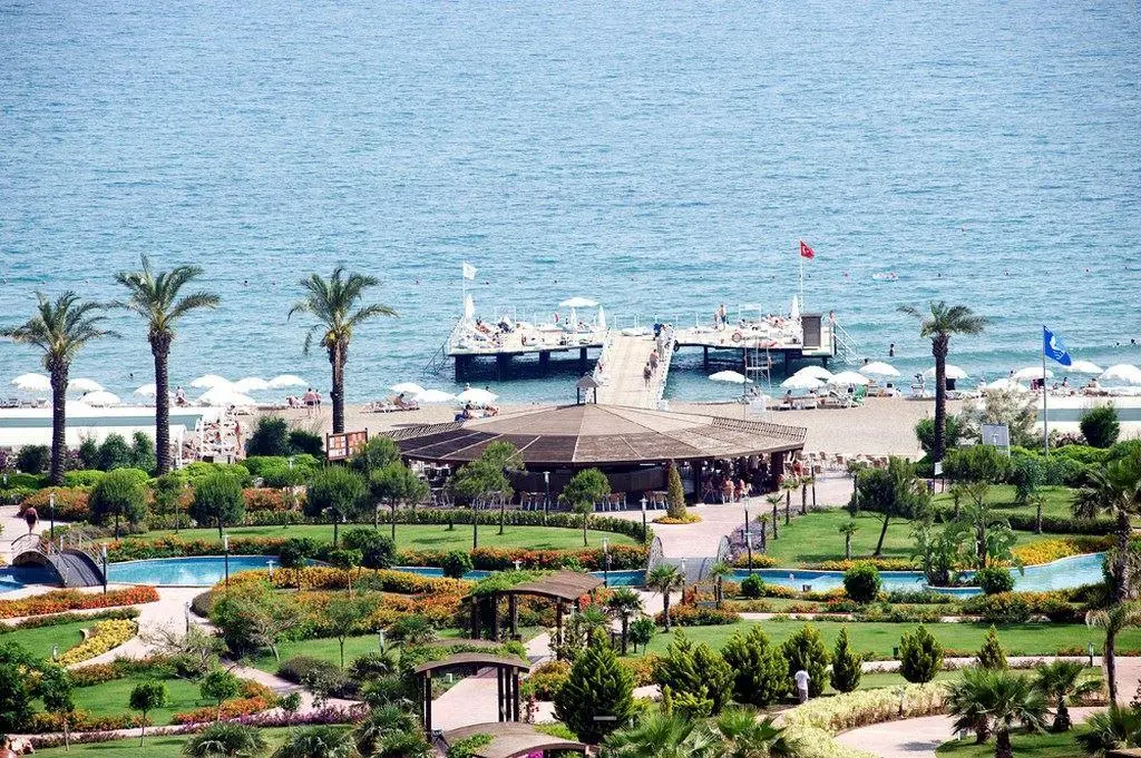 в 15 км от аэропорта, в 11 км от центра г. Анталья, на берегу моря.
