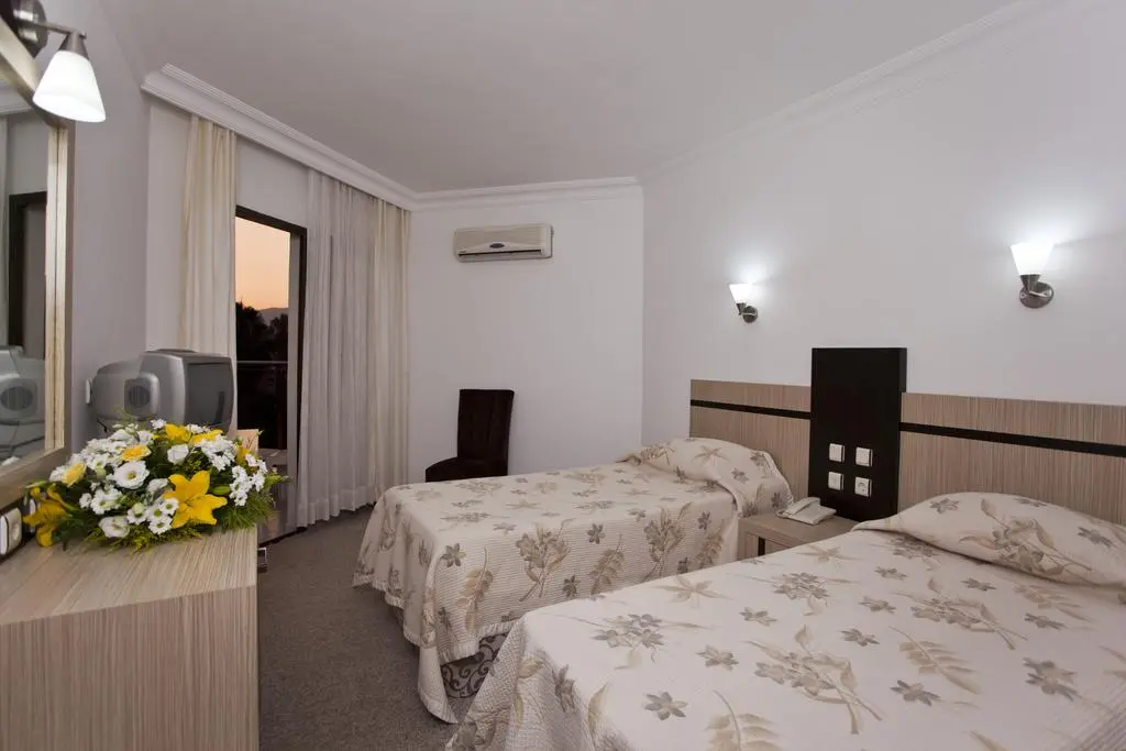 В номере: сейф (платно), смена белья 2 раза в неделю, кондиционер (индивидуальный), телефон, пол: ковровое покрытие (керамическая плита, ламинат), уборка номера (ежедневно), фен, мини-бар (вода в день заезда – бесплатно), балкон (кроме 4 номеров), душ, телевизор (есть русский канал).