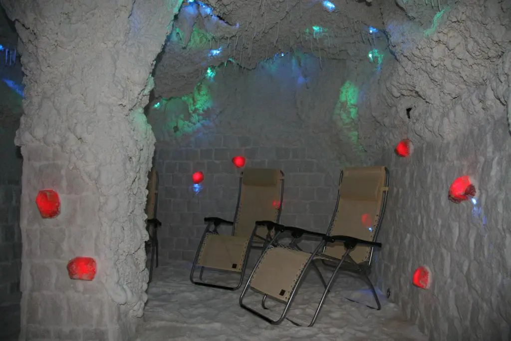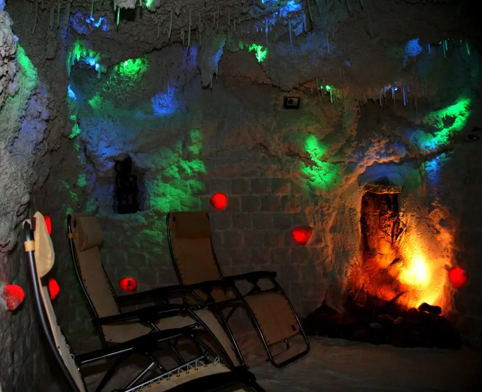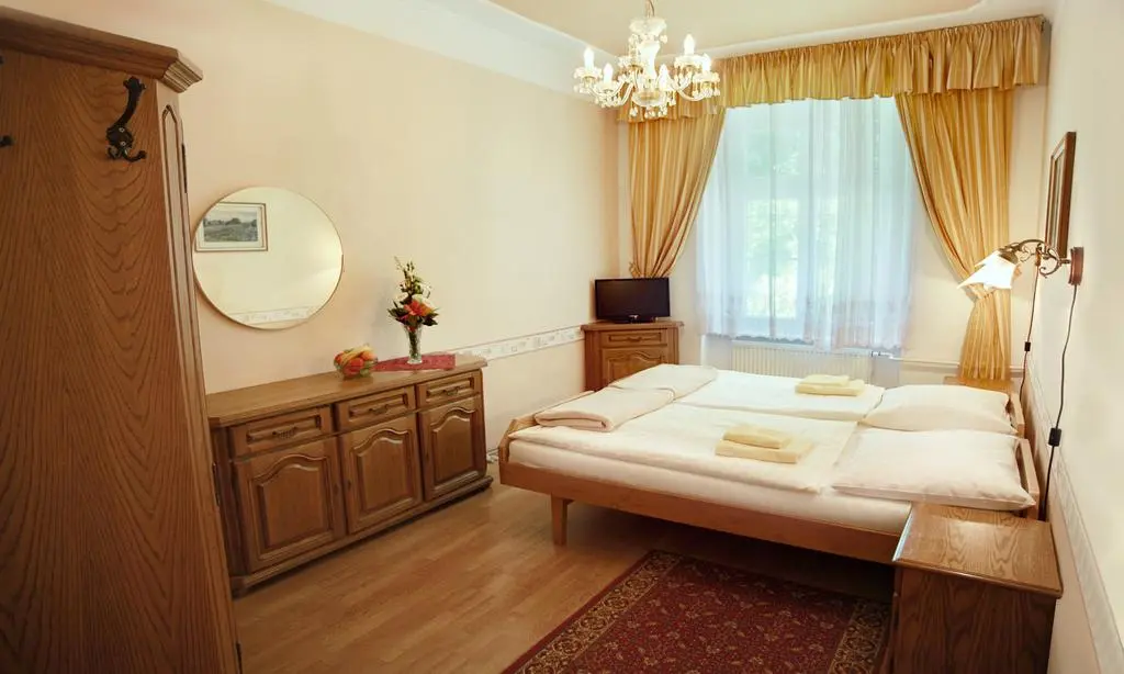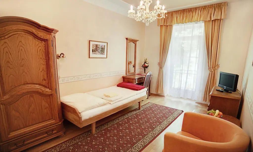 ванная комната с ванной или душем, туалет, телевизор (российские программы РТР, ОРТ),интернет, телефон, холодильник и фен. Сейф на рецепции (бесплатно). Возможны дополнительная и детская кровати. Вид из номеров на город и лес. Номер для инвалидов. Соляная пещера располагается в подземелье санатория «Моравия». Она была построена относительно недавно на базе природного источника.