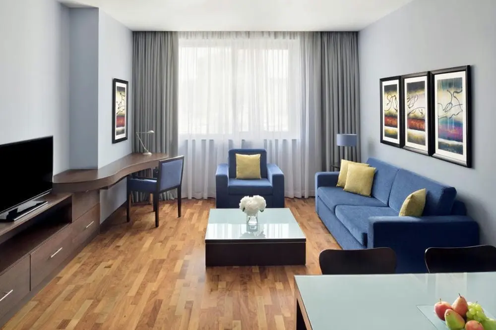 80 One Bedroom Apartment (67-80 м2, вид на город, спальня с 1 двуспальной кроватью "king-size", мини-кухня, обеденный стол, гостиная зона, макс. 4 чел.);
